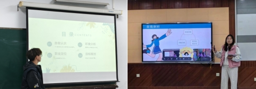 成长赛道采用“主题陈述+评委提问”的形式进行,13名参赛选手阐述了自己的职业目标、自我认知、职业认知、规划路径、评估调整等内容,展现出扎实的职业规划能力、与时俱进的创新思维以及对未来职业的热情与憧憬。评委老师针对各位选手的表现给出了针对性意见与建议,对选手们职业规划的科学性、合理性、可行性等方面进行了点评。