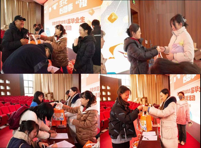 历史学院筹备了一系列暖心环节,为备考学子加油鼓劲,旨在通过实际行动彰显学院的人文关怀。活动现场,学院领导、教师代表及辅导员将满载祝福的考研加油包赠予备考学子,学院定制了“心想事‘橙’”考研礼包,配备了考试文具套装,礼包内的每一份礼物、每一张卡片承载着学院师生对备考学子们的祝福和期望,激发了备考学子面对挑战的勇气与决心。