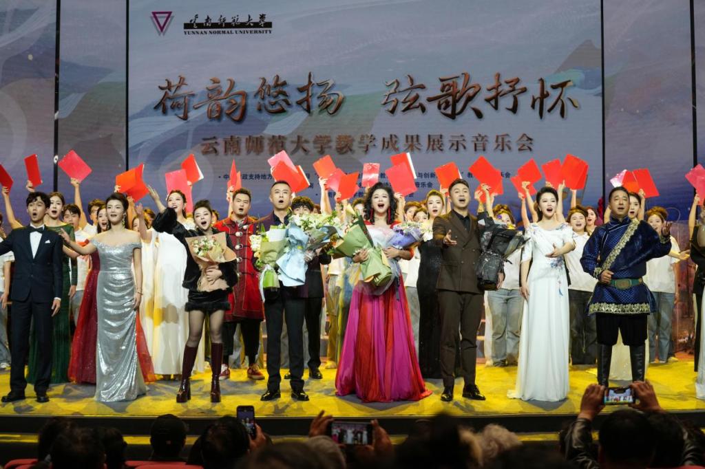 音乐会由何纾教授及其团队共同演绎,集中展示了我校师生秉承西南联大“刚毅坚卓”的校训,以培养师范类人才为主体,以创新教学内容为方式,助力培养云南省少数民族艺术人才,推动云南民族地区声乐育人成果的经典教学。
