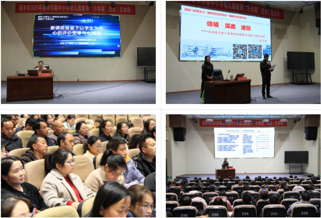 培训团队由地理学部副主任牛乐德带队,李琳教授、丁文荣教授、云南省特级正高级教师李文娟等一行组成。2月19日,李琳在腾冲市为线上、线下3000余名教师进行了题为“新课改背景下教学评价:以学生为中心的评价变革”的培训,重点讲解了新课改下的教学评价理念。下午,李文娟线下为腾冲市的初高中地理教师提供了2025年高三地理学科复习备考策略培训,帮助教师有效应对高考复习挑战。
