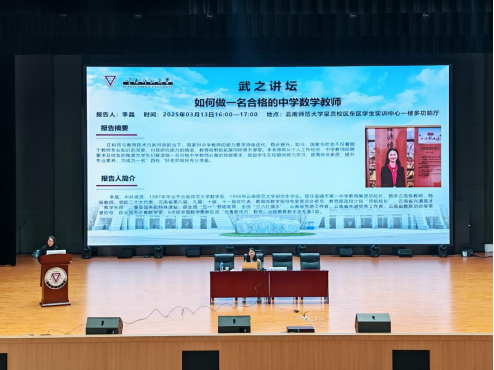 3月13日,“武之讲坛”在呈贡校区东区学生实训中心一楼多功能厅开讲。曲靖市第一中学教育集团总校长、数学正高级教师李晶以“如何做一名合格的中学数学教师”为主题,为师生带来一场兼具专业性与实践性的专题讲座。数学学院院长刘祥清主持讲座,1000余名师生参加。
