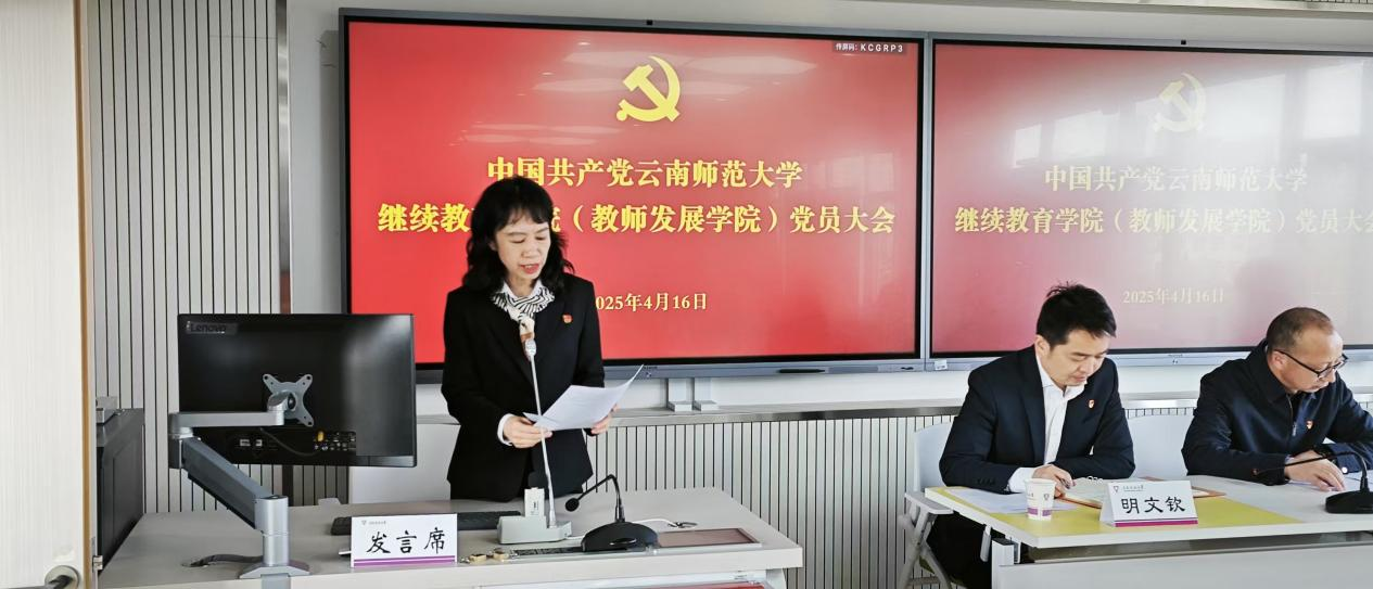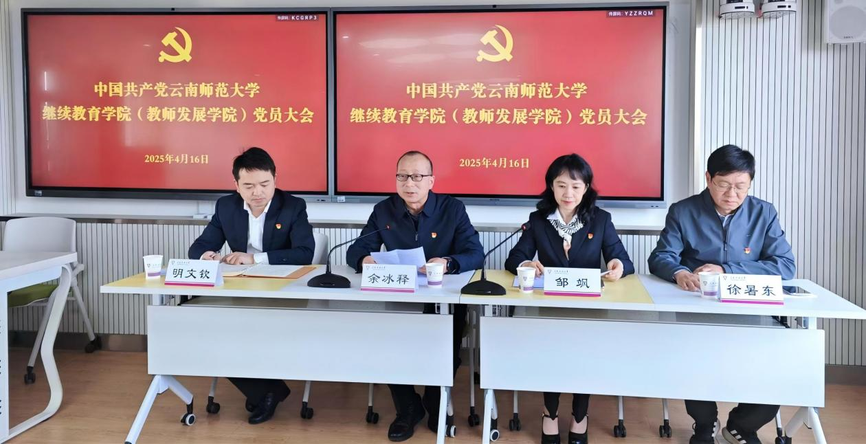 4月16日上午,中国共产党云南师范大学继续教育学院(教师发展学院)党员大会在一二·一西南联大校区明远楼603召开。校党委常委、组织部部长余冰释同志,校党委组织部副部长马春雨同志参加会议。会议由继续教育学院党委书记邹飒同志主持。