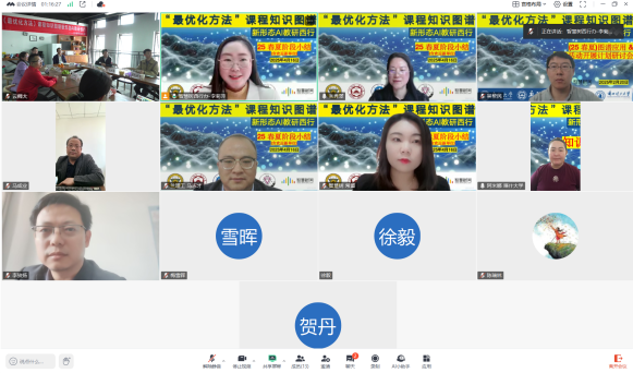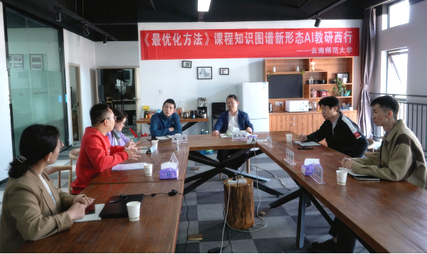 4月16日,在智慧树网的技术支持下,《最优化方法》课程知识图谱新形态AI教研西行项目迎来重要节点——云南师范大学作为新成员首次参与项目阶段会议。我校教务处处长陈长瑶,数学学院教学副院长王亮、胡恩良教授课程团队,东南大学、新疆大学、喀什大学、兰州理工大学等高校代表,智慧树网技术专家参加会议。会议采取线上线下结合的形式召开。