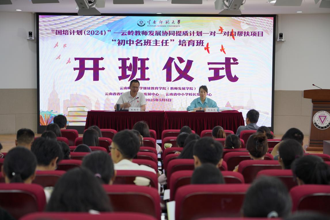 5月8日,由我校继续教育学院(教师发展学院)组织实施的“国培计划(2024)”—云岭教师发展协同提质计划项目“初中名班主任”培育班在一二·一西南联大校区开班。继续教育学院(教师发展学院)院长张国华,项目管理团队,梁河县、瑞丽市、河口县、勐腊县、金平县、墨江县等6个项目县168名初中班主任教师参加了开班仪式。仪式由继续教育学院(教师发展学院)副院长刘应兰主持。