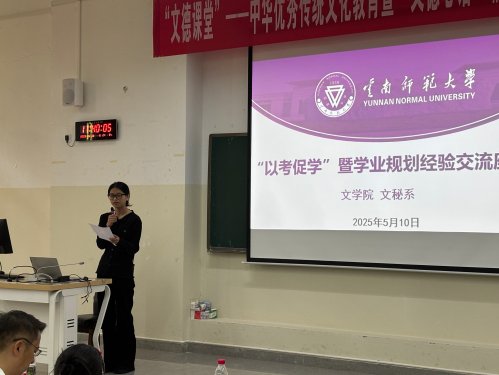 为加强对秘书学专业学生的生涯规划指导,推动学业规划融入文化育人体系,5月10日,文学院在汇文楼一区106教室举办“以考促学”暨学业规划经验交流座谈会。学院相关领导、专任教师、文秘系100余名学生参加座谈会。