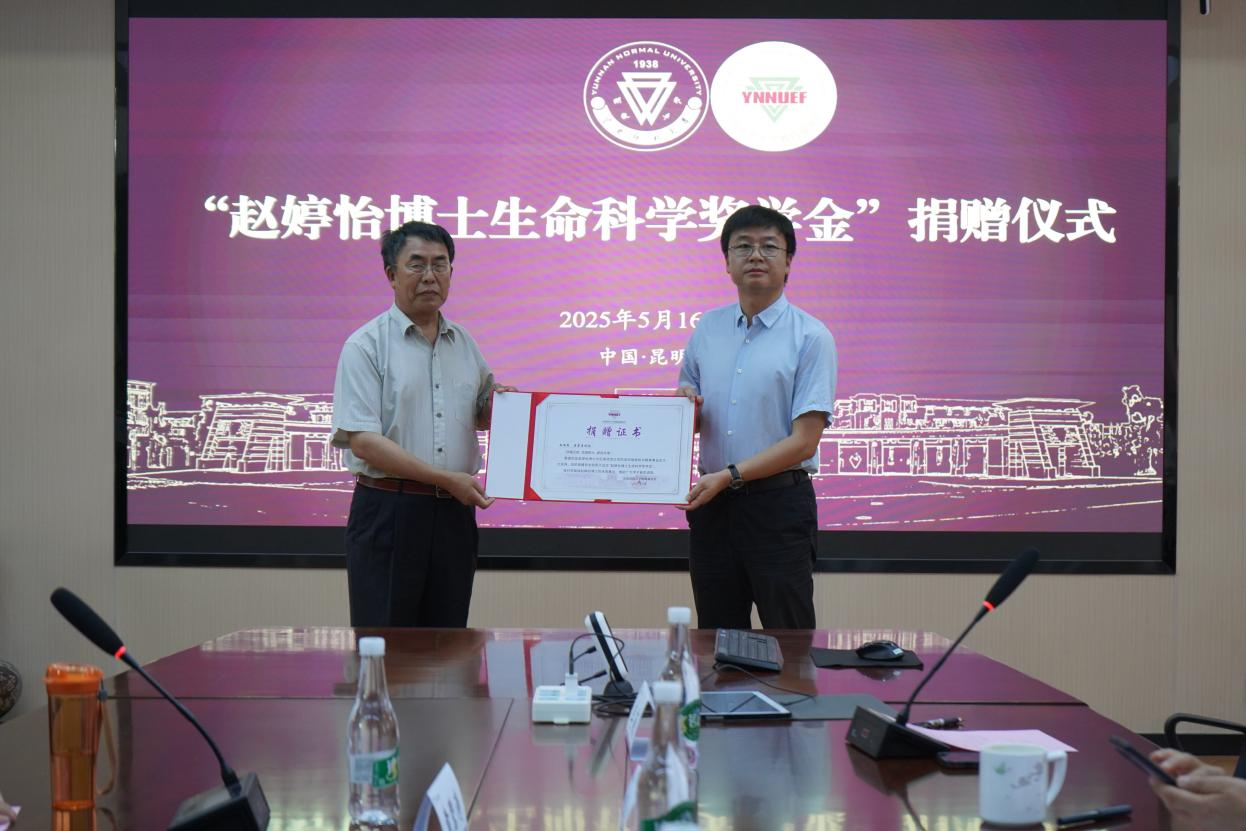 5月16日,“赵婷怡博士生命科学奖学金”捐赠仪式在我校生命科学学院举行。赵婷怡博士家属,云南师范大学教育基金会理事长谢锋,生命科学学院党委书记周滔、院长赵三军及师生代表参加了捐赠仪式,仪式由生命科学学院党委副书记李薇主持。