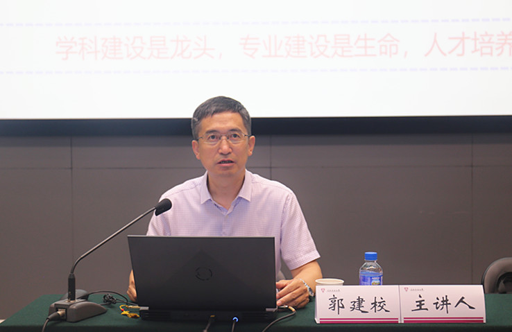 为深化本科教育教学综合改革,6月13日,学校邀请天津外国语大学郭建校教授开展“新时期高校本科人才培养方案的设计与编写”的专题辅导培训。培训由教务处处长陈长瑶主持,各学院(学部)主要负责人、分管本科教学副院长、专业负责人、教务办主任、教务处(教评中心)相关人员120余人参加辅导。
