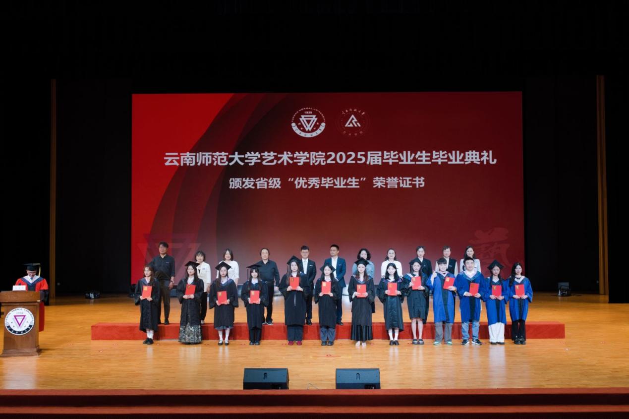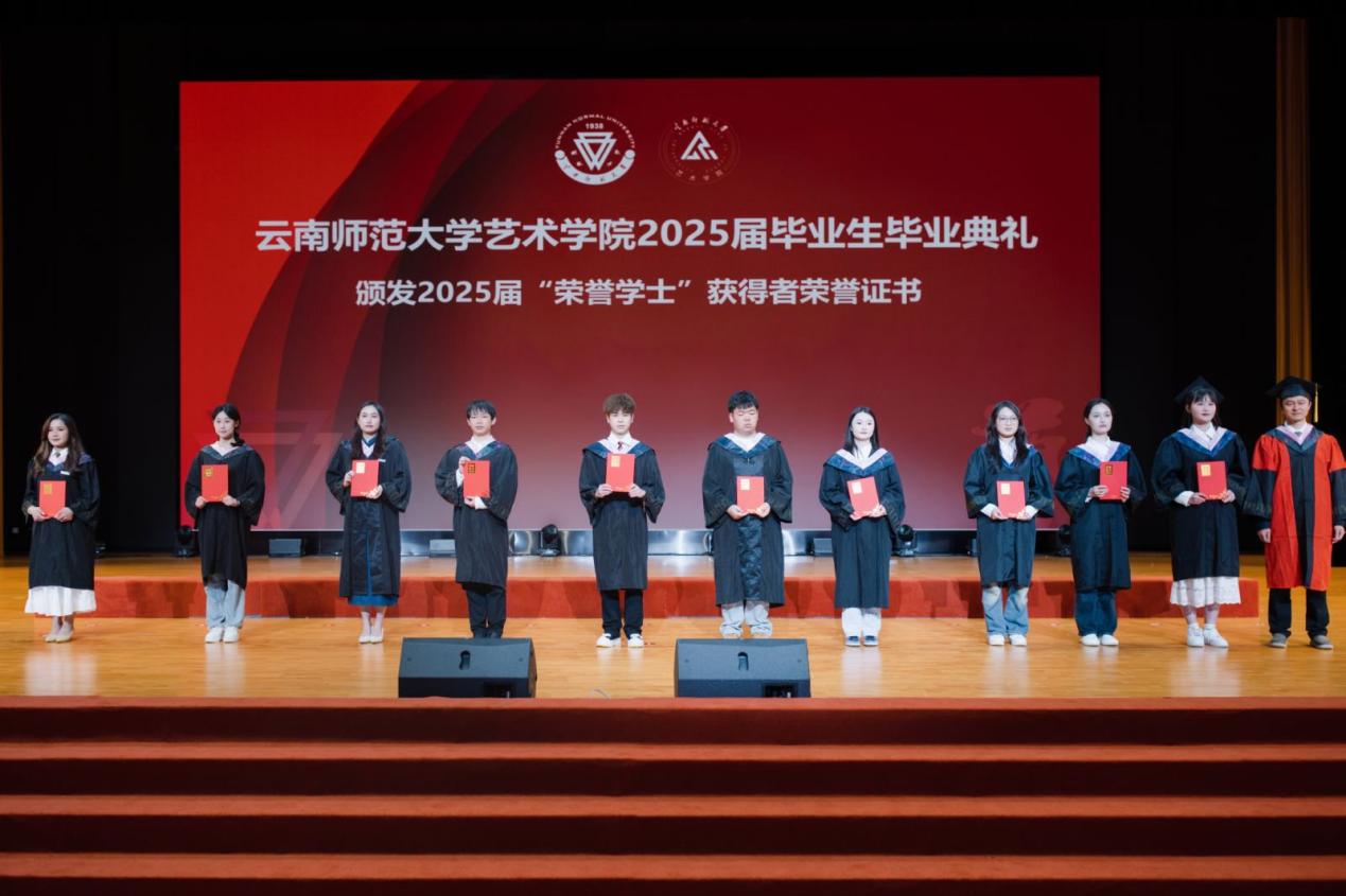 学院对2025届省级、校级优秀毕业生进行表彰并为获得“荣誉学士”称号的同学颁发证书;为作品获得优秀毕业作品的同学颁发“优秀毕业作品收藏证书”;为获得省级优秀毕业生以及校级优秀毕业生的同学颁发荣誉证书。