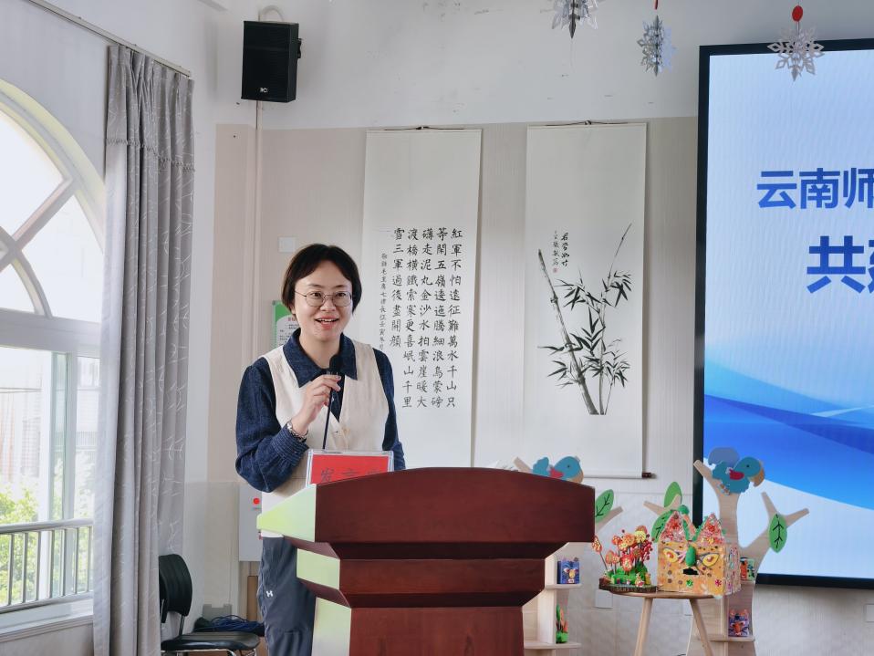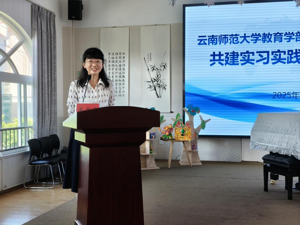 朱静虹介绍了云南师范大学的办学历史、教育学部基本情况及就业情况,并对幼儿园提供实习平台和对往届毕业生的栽培表达感谢。她希望以此为契机,实现双方资源共享和优势互补,进一步推动高等教育和基础教育协同发展,提升人才培养质量,为毕业生高质量就业奠定基础。