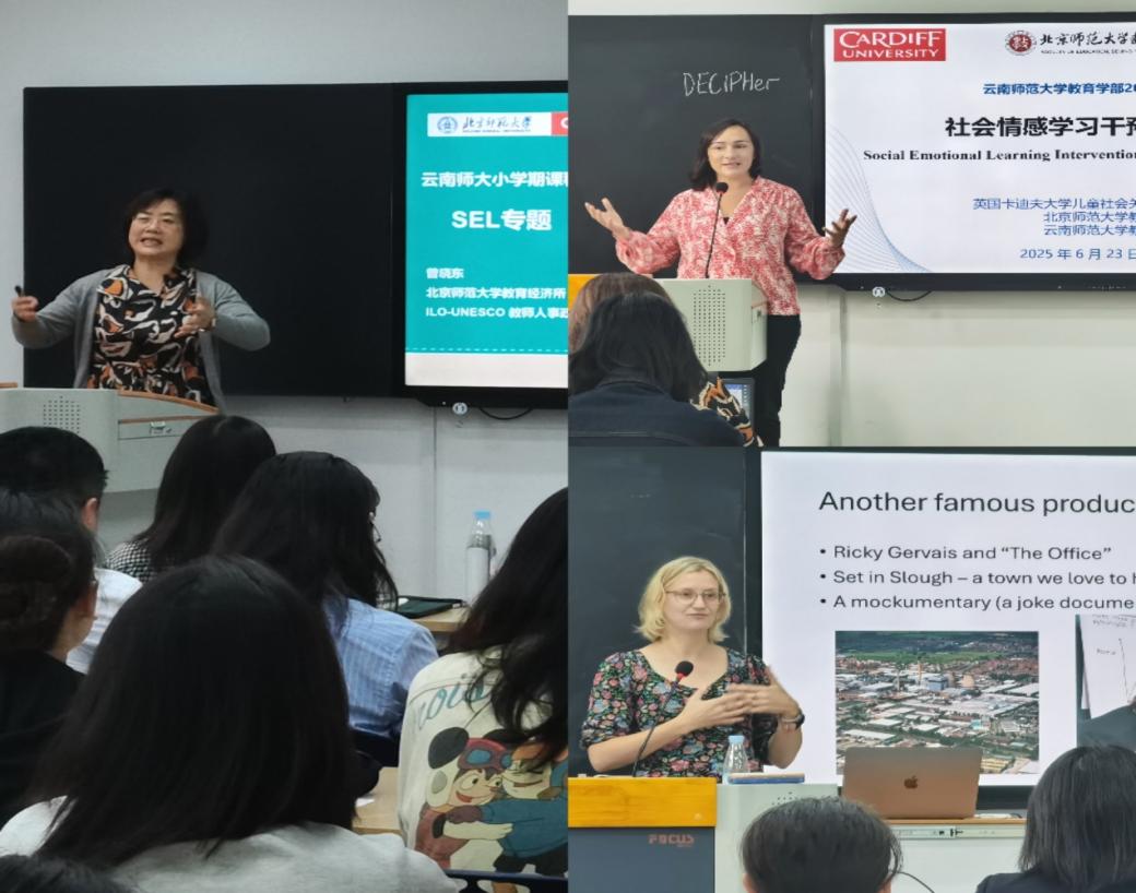 6月23日至7月4日,云南师范大学教育学部联合北京师范大学教育学部、英国卡迪夫大学开展“社会情感学习(SEL)干预与循证研究”暑期国际小学期课程。来自北京师范大学、西北师范大学、百色学院、榆林学院的教师,以及北京师范大学、云南师范大学教育学部本科生和研究生齐聚云师校园,在专家团队的系统指导下,完成了从理论建构、方法应用到实践创新的全链条学习。