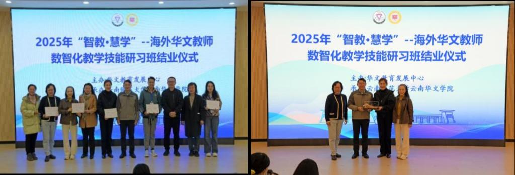 12月29日,由华文教育发展中心主办、云南师范大学云南华文学院承办的2025年“智教·慧学”—海外华文教师数智化教学技能研习班结业仪式在华文学院国际会议中心举行。云南华文学院党委书记陈永荣、副院长戴思远和来自12个国家53所华校的78名参训教师参加结业仪式。