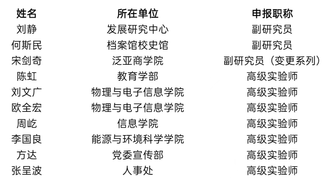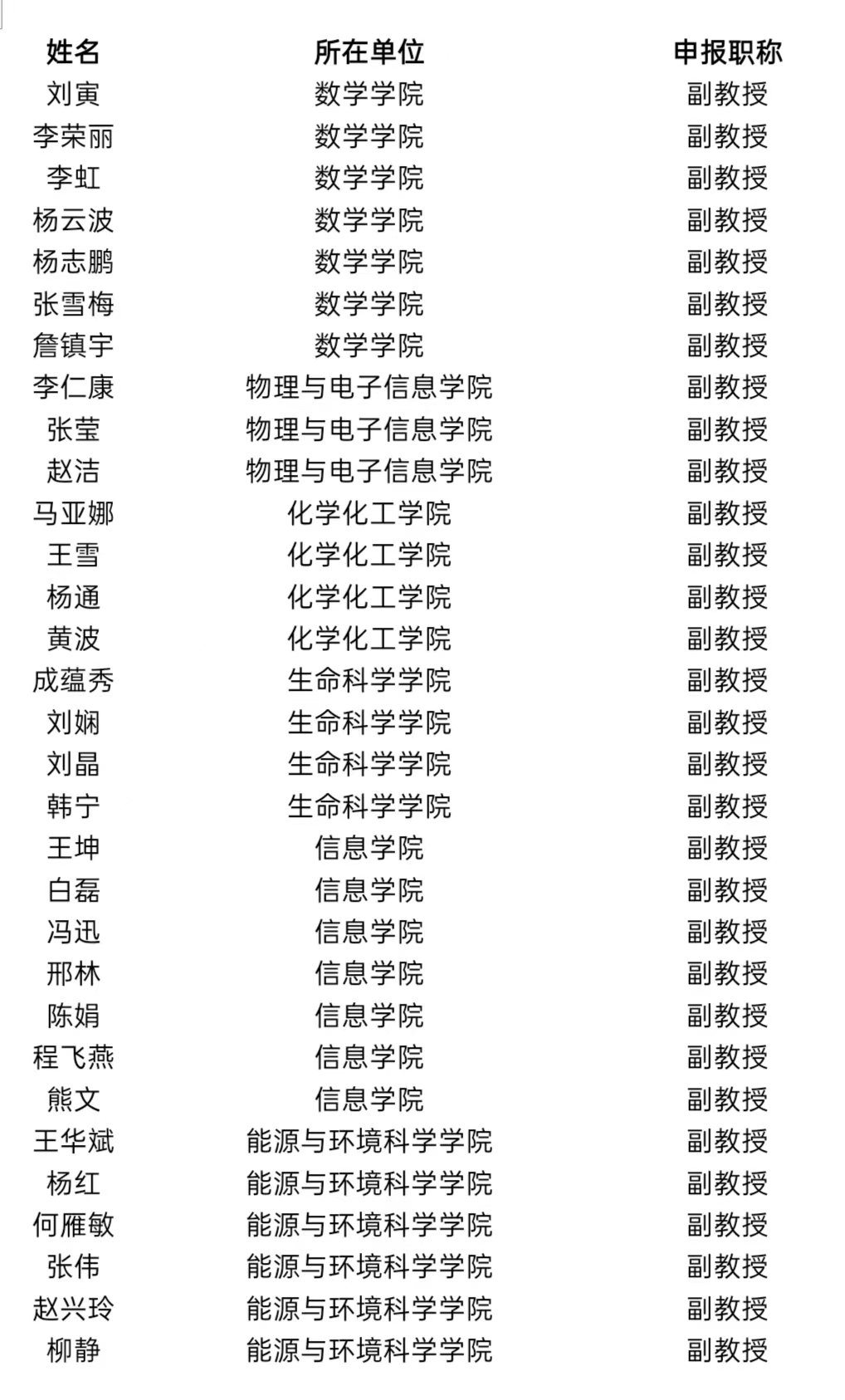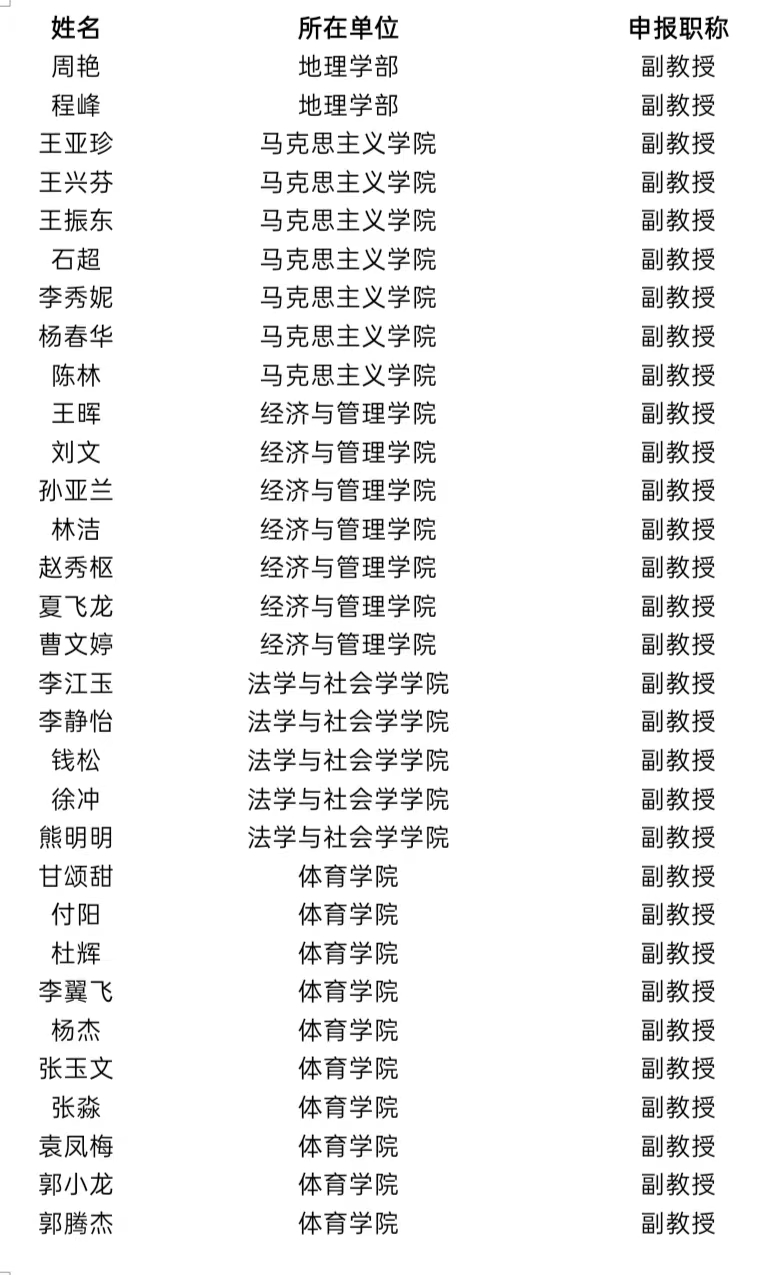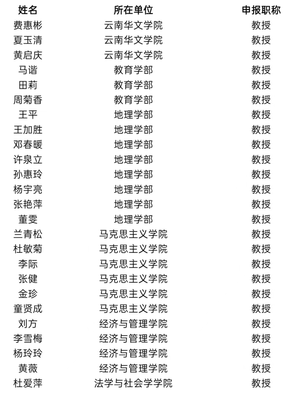 经资格审查,拟同意以下申报评审高级职称人员提交云南师范大学教授副教授评审委员会评审,现进行公示(同部门按姓氏笔画排序)。
