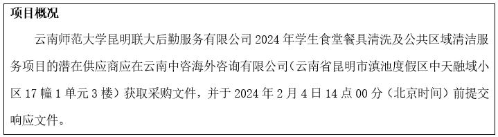 2.项目名称:云南师范大学昆明联大后勤服务有限公司2024年学生食堂餐具清洗及公共区域清洁服务项目;