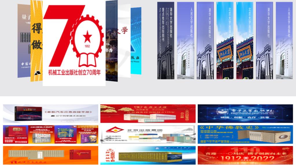 1. 主会场:其左上角展示图采会开幕式领导讲话及平台消息发布。其他板块主要展示重点出版社书目,直接点击出版社名称即可进入选书界面。