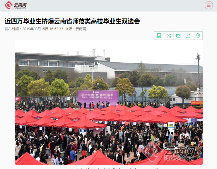 云南网 2019-03-15 近四万毕业生挤爆云南省师范类高校毕业生双选会