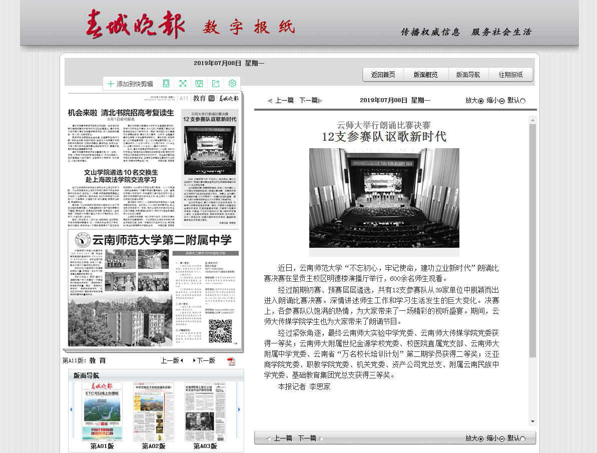 上一条:云南日报 2019-07-12 彰显独特性 体现时代性——西南联大革命旧址保护和利用 下一条:云南新闻联播 2019-07-03 我省各部门开展“不忘初心、牢记使命”主题教育