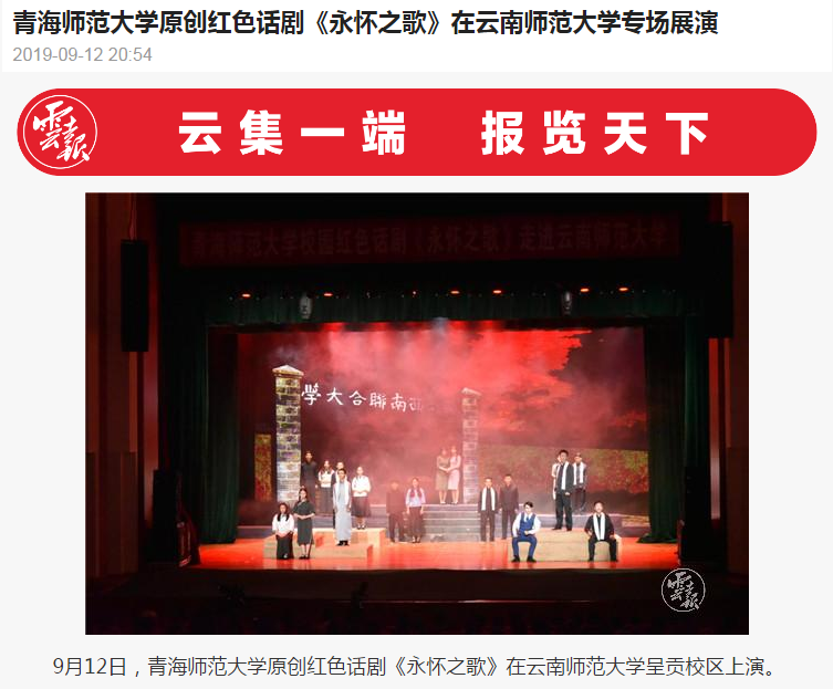 云南日报 2019-09-12 青海师范大学原创红色话剧《永怀之歌》在云南师范大学专场展演