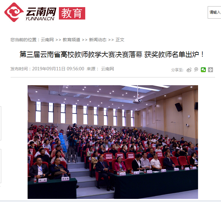 上一条:春城晚报 2019-09-11 云南师范大学举行庆祝第35个教师节座谈暨表彰大会 下一条:新华网 2019-09-11 云南省高校教师教学大赛促课堂教学创新与改革