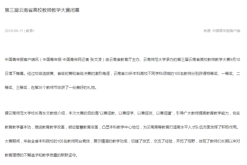 上一条:云南新闻联播 2019-09-11 全省高校教师教学大赛在云南师范大学举行 下一条:昆明日报 2019-09-11 致敬师道!云南师范大学举行教师节表彰大会