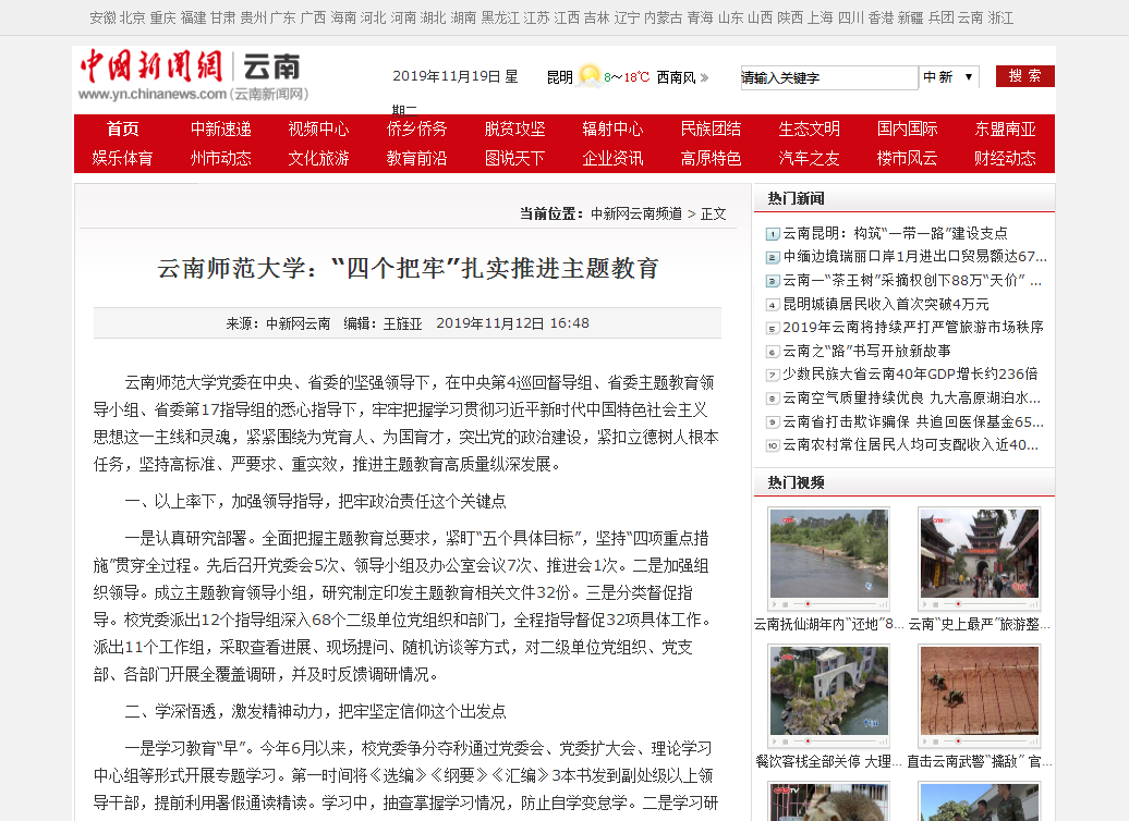 上一条:云南晚间新闻 2019-11-17 上讲台 比教学 我省高校教师教学技能大赛收官 下一条:中国日报 2019-11-13 云南师范大学多举措扎实推进主题教育