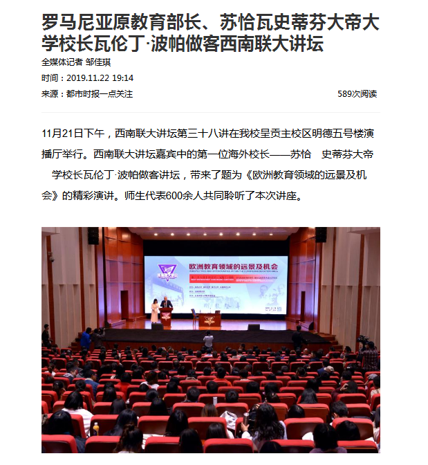 上一条:云南日报 2019-11-24 全面系统解读 统一思想认识 下一条:春城晚报 2019-11-22 罗马尼亚苏恰瓦史蒂芬大帝大学校长瓦伦丁·波帕做客西南联大讲坛