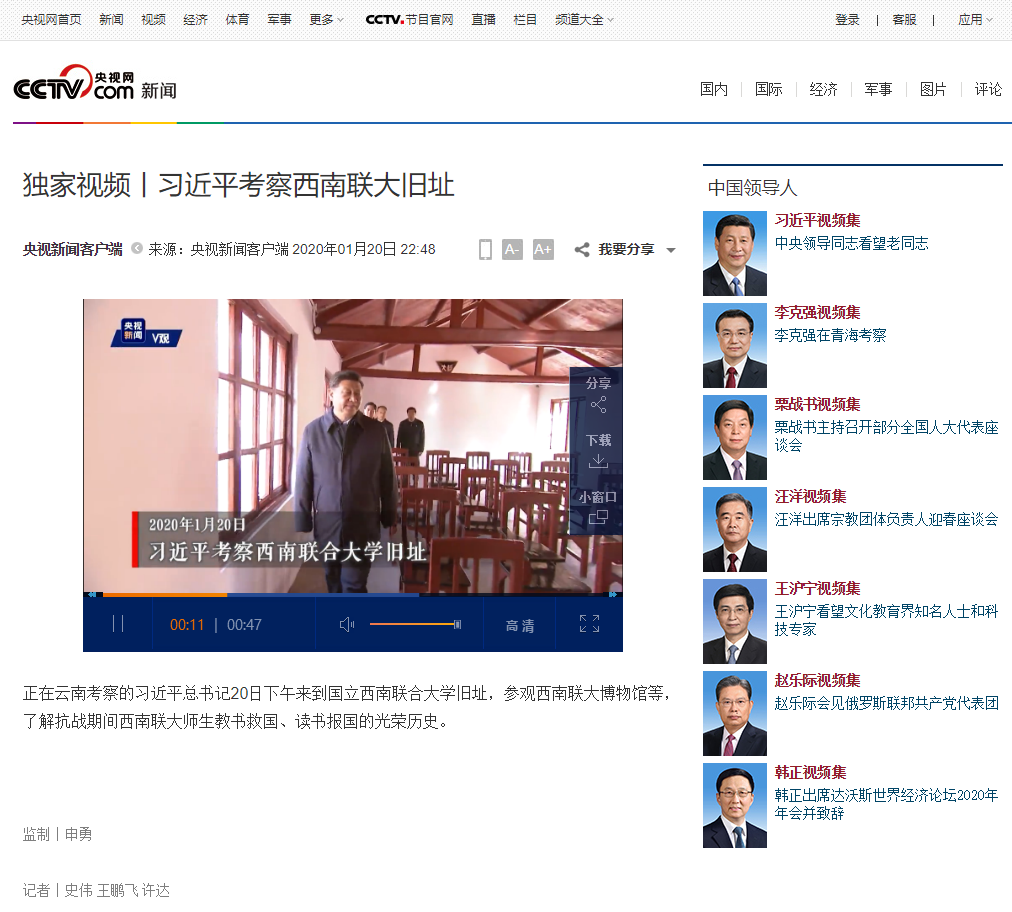 上一条:云南日报 2020-01-22 “培养有历史感责任感、志存高远的时代新人”——聚焦习近平总书记考察云南走过的地方 下一条:新华每日电讯 2020-01-22 习近平考察西南联大旧址 | 在这里,最能读懂什么叫家国情怀