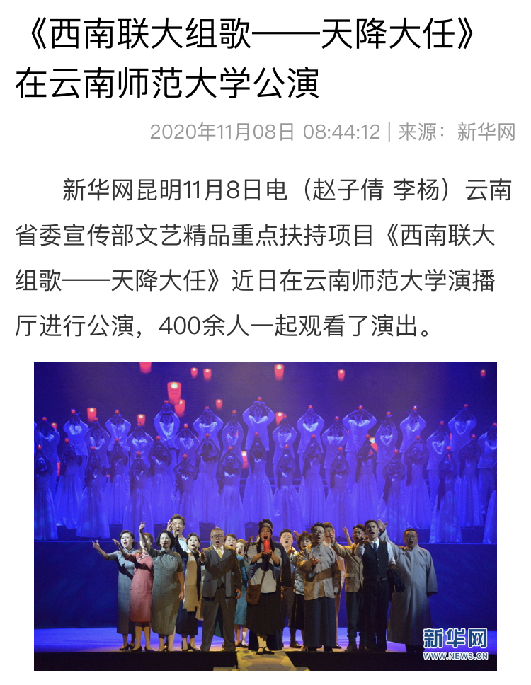 新华网 2020-11-08 《西南联大组歌——天降大任》在云南师范大学公演