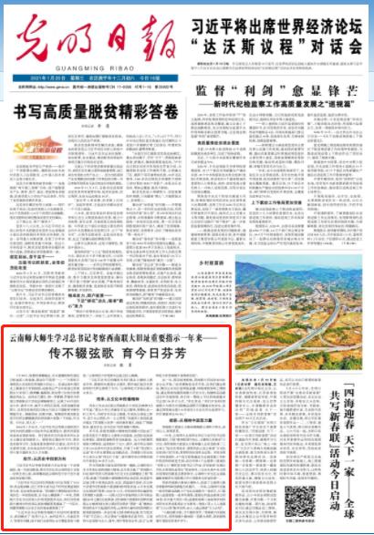 上一条:云南发布 2021-01-20 《光明日报》头版报道:云南师大全体师生牢记习近平总书记的殷殷重托 传不辍弦歌 育今日芬芳 下一条:光明日报 2021-01-20 云南师大师生学习习近平总书记考察西南联大旧址重要指示一年来——传不辍弦歌 育今日芬芳