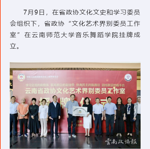 云南政协报 2021-07-11 省政协“文化艺术界别委员工作室”挂牌成立