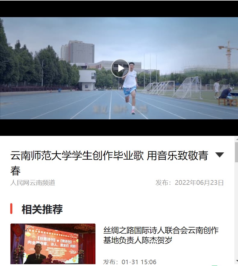 上一条:省内外专家昆明共话高校图书馆数字化资源管理与应用 下一条:云南网 2022-06-22 云南师范大学发布原创毕业歌《繁夏》MV