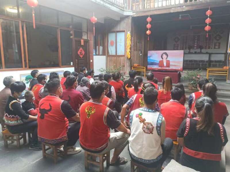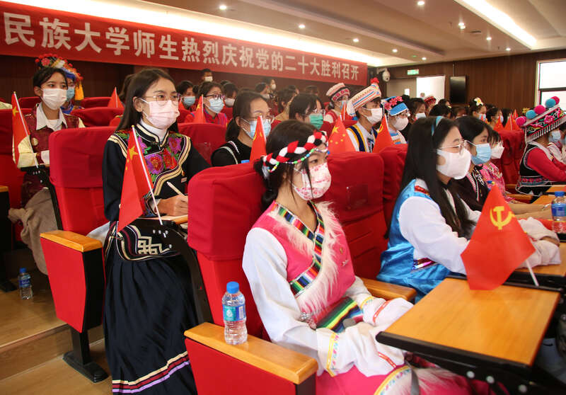 云南民族大学教师和学生一起收看党的二十大开幕会