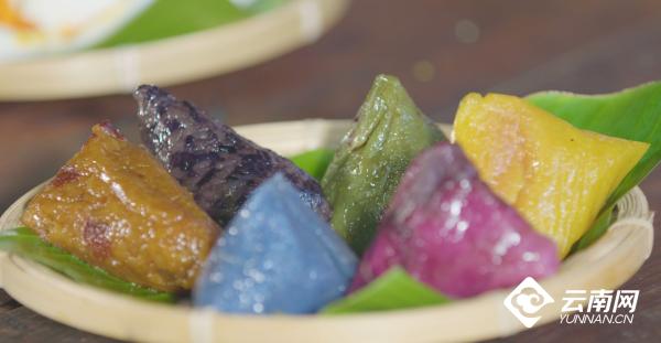 吃七彩花米粽