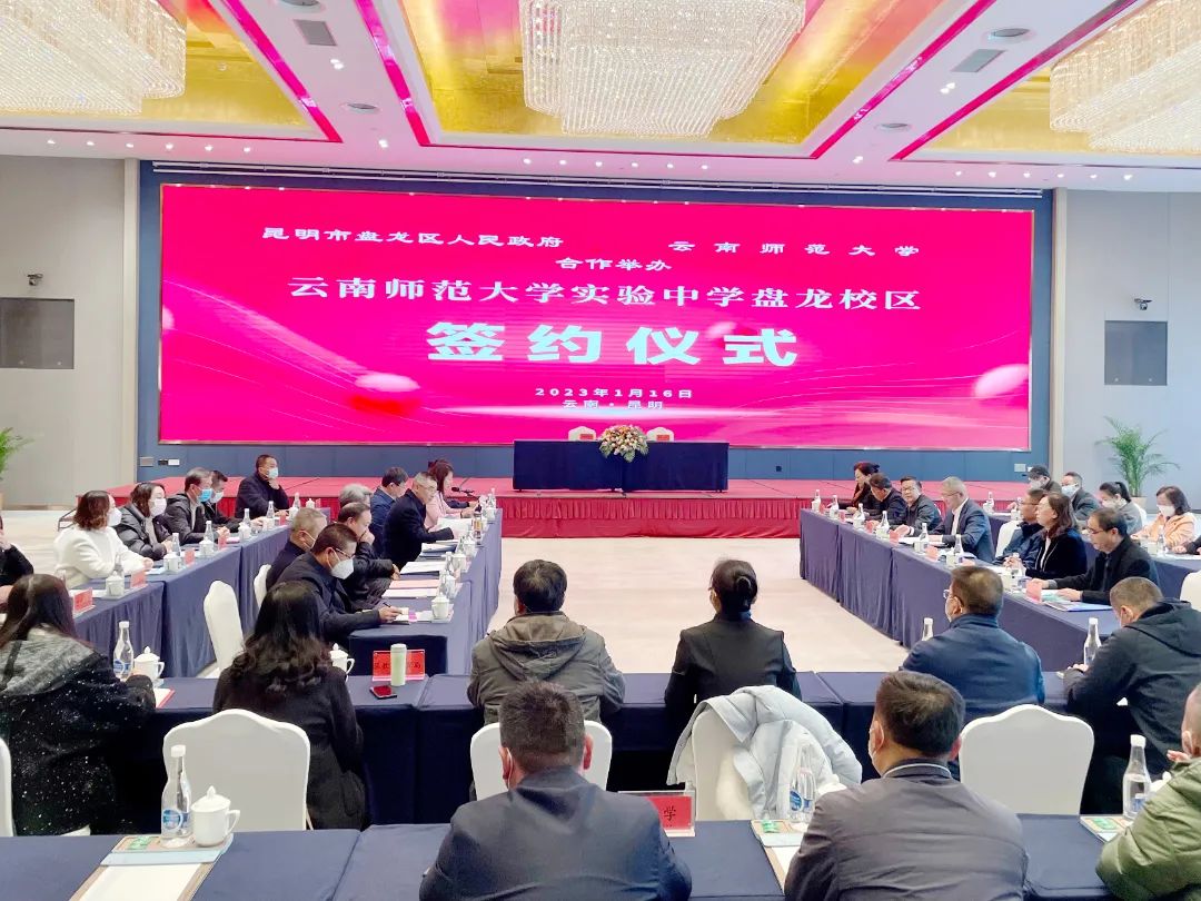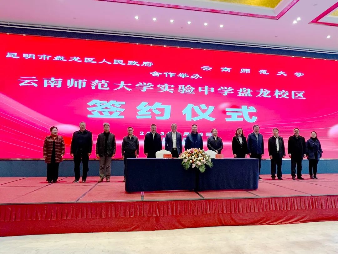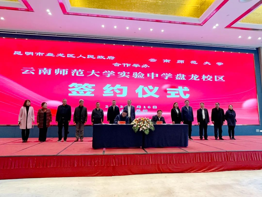 为大力提升盘龙区教育教学质量,打造高质量基础教育,共同推动盘龙教育改革发展,新年伊始,盘龙区人民政府与云南师范大学就资源共享达成共识,合作开办云南师范大学实验中学盘龙校区,并于1月16日举行签约仪式。