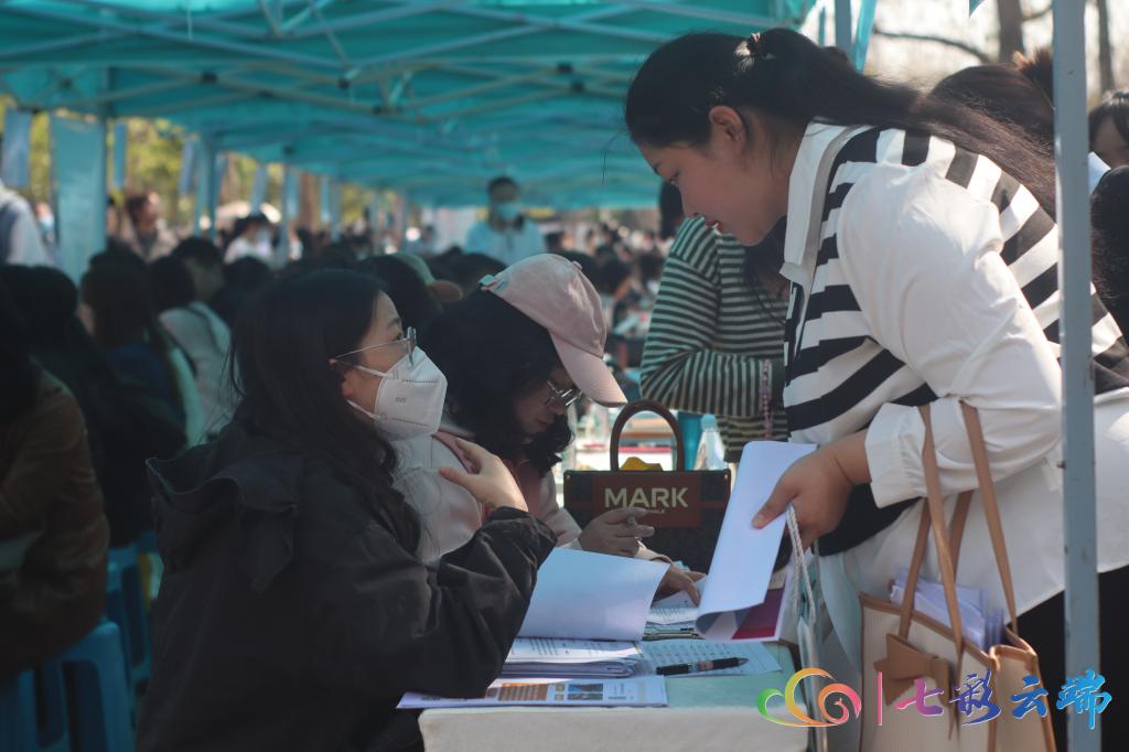 在招聘会现场的“简历诊脉”摊位前,云南师范大学地理学部的党委副书记吕峥正在为前来咨询的同学修改简历。“有的同学的简历没有突出他的优势,比如实习经历、奖学金等,我们就给他们提出相应的修改意见。毕竟这是三年来第一次大型线下招聘会,目测签约率应该会比前两年高。”