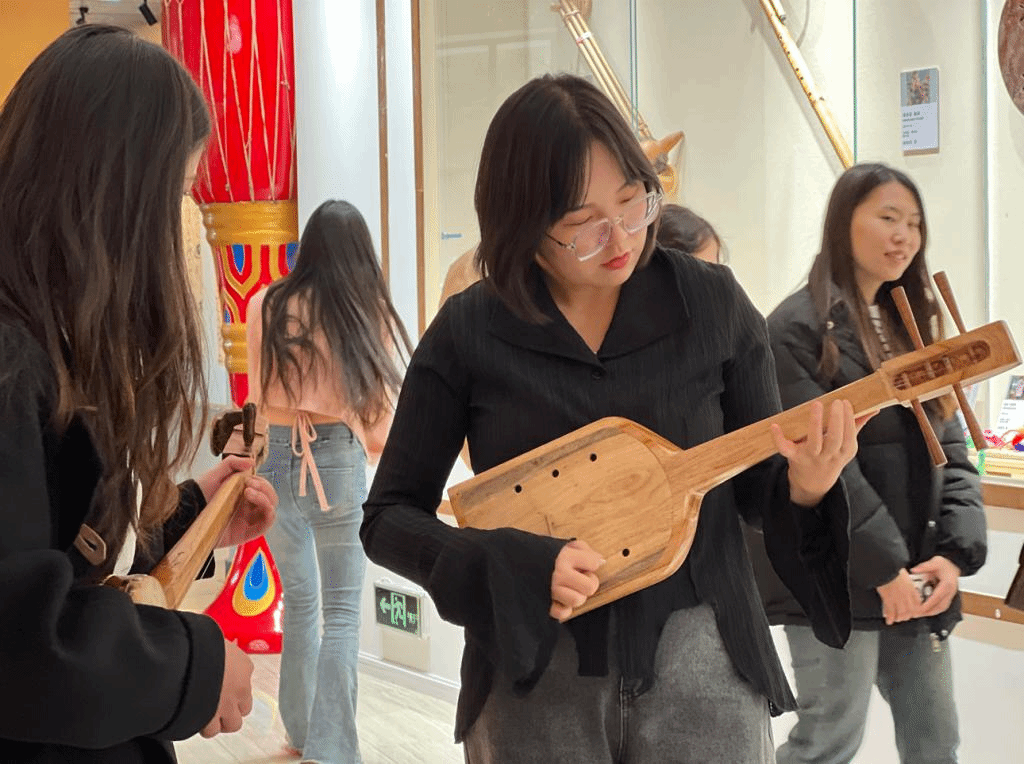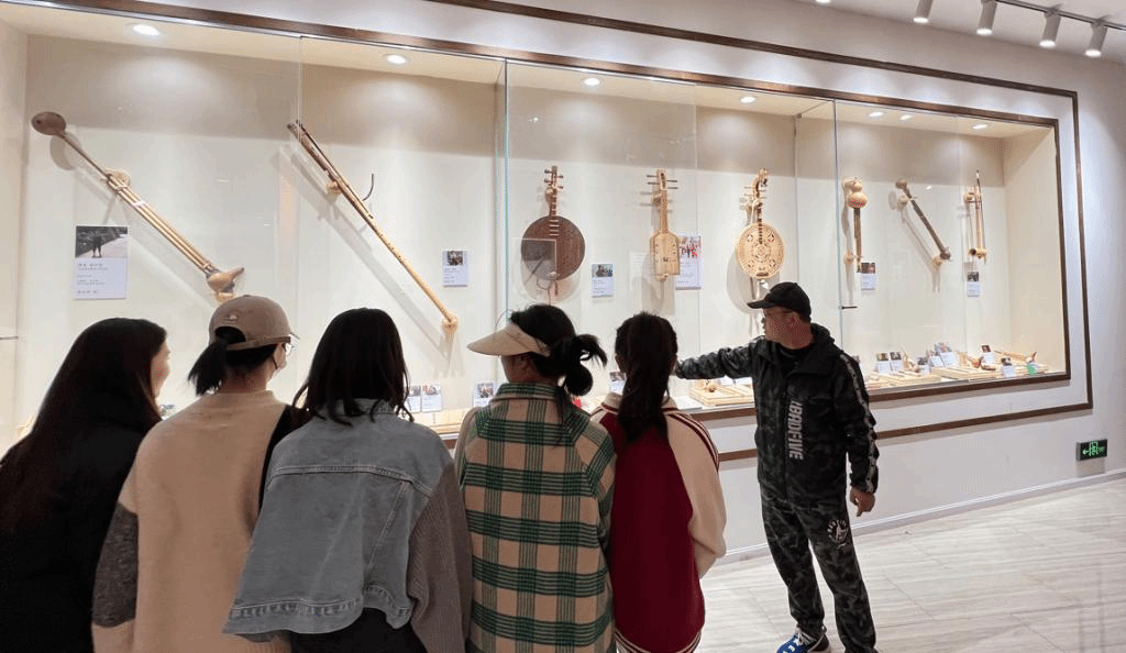 2022年底,利用音乐舞蹈学院教学楼一楼公共空间打造的陈列馆开放了,每个上下课的师生都会路过。有人看到没见过的乐器,会停下脚步仔细端详;有人看到熟悉的乐器,会兴之所至拿起演奏。