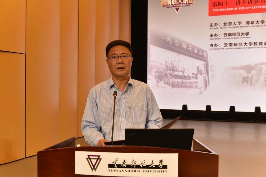 云南师范大学校长王德强主持讲坛并致辞。他介绍,西南联大讲坛自开讲以来,以传播科学精神和人文精神为宗旨,以聚集高端人才资源为途径,以国际交流为特色,已成为促进文明进步的学术平台、助力国家和云南区域战略发展的引智平台和服务高等教育发展、科技合作、多元文化交融的综合性平台。