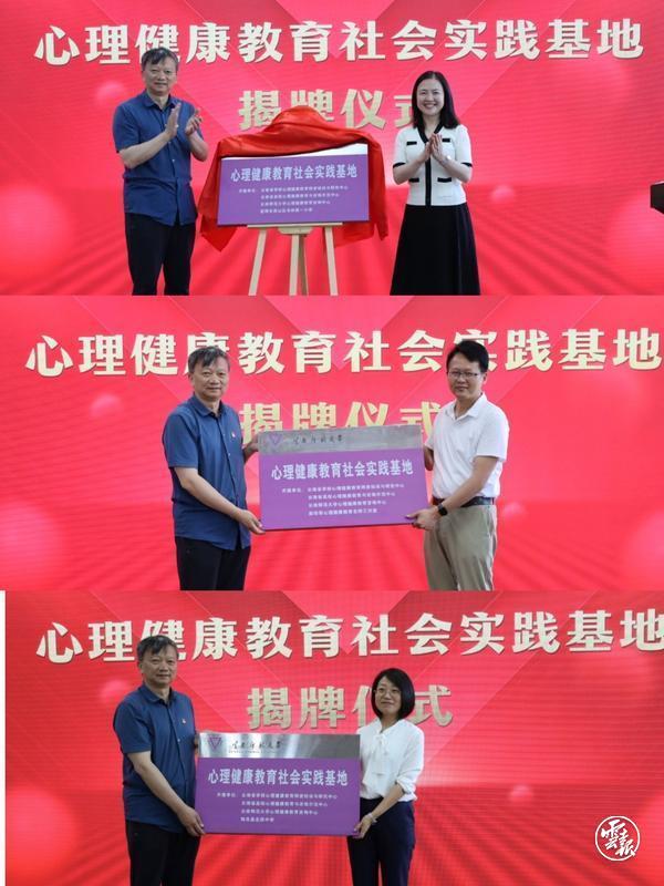 研讨会现场,云南师范大学心理健康教育咨询中心与昆明市西山区书林第一小学、彭华军心理健康教育名师工作室、陆良县北辰中学进行了共建心理健康教育社会实践基地的挂牌,共同开拓心理健康教育新局面,携手共建咨询服务“试验田”。
