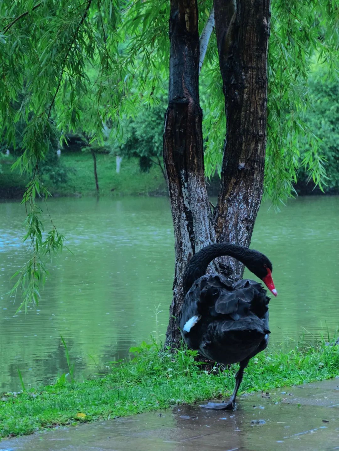黑天鹅是懂下雨天的,雨中的“天鹅舞”更美。