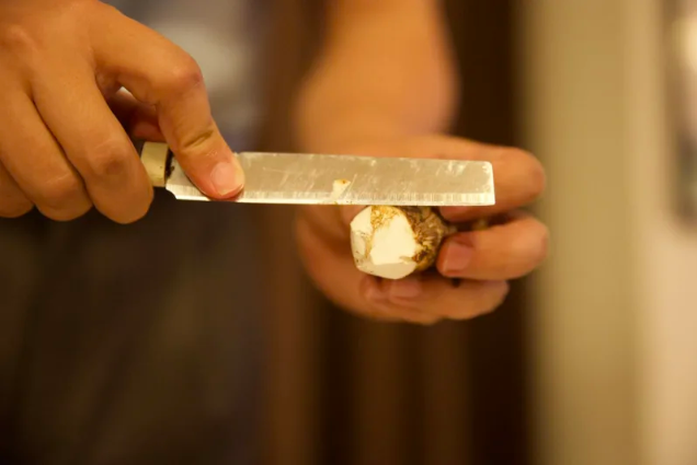 11日、昆明食用菌研究所でマツタケの刺身を作る陳斌氏。(昆明=新華社記者/孫敏)