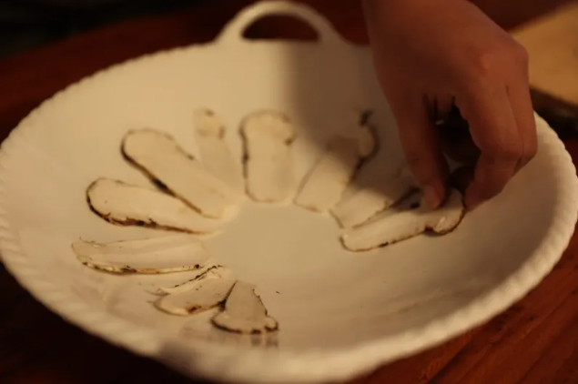 11日、昆明食用菌研究所で完成したマツタケの刺身。(昆明=新華社記者/孫敏)