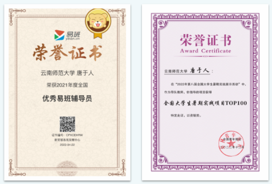 云南华文学院专职辅导员、团委书记唐于人,曾获全国易班优秀辅导员、全国“三下乡”社会实践优秀个人、云南省辅导员素质能力大赛二等奖等30余项国家级、省级等荣誉。谈及曾经所获荣誉,唐于人只是淡淡一笑,但谈到辅导员工作,她立刻侃侃而谈:“曾经,我的大学辅导员给了我很多帮助,陪伴我成长,我至今难忘。如今,我也成了一名高校辅导员,我要以老师为榜样,用心、用情、用力做好这项工作。”