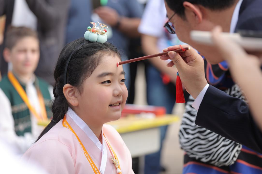 启动仪式后,第三届“汉语桥”世界小学生中文秀的选手们,进行了国际友谊林植树活动。来自韩国的“汉语桥”小选手许有恩有一个有趣的梦想,那就是呼吸中国的空气,现在,踏上云南土地的她,已经实现了这个梦想。她说:“希望五年后,长大成为中学生的我,还能来参加‘汉语桥’的中学生比赛。那时,这棵树更高了,我们也像树一样成长了,友谊也更加深厚了。”许有恩小朋友还给伙伴们准备了一个小小的礼物,礼物的卡片上面写着:有缘千里来相会。这句话的意思是,人与人之间只要有缘分,即使相隔很远也会相见。“汉语桥”是友谊之桥,让来自五大洲的青少年们相聚。“交了更多的朋友”,是“汉语桥”选手们经常提起的一句话。此前结束的杭州亚运会上,中国古诗“相知无远近,万里尚为邻”刷屏社交网络,这句诗的意思是,知己挚友不分远近,即使相隔万里,仍如同比邻而居。“汉语桥”的参赛选手们,来自五洲四海,但因为热爱中文的心在一起,所以不远万里,跨越山海,彼此间的距离也不再遥远。