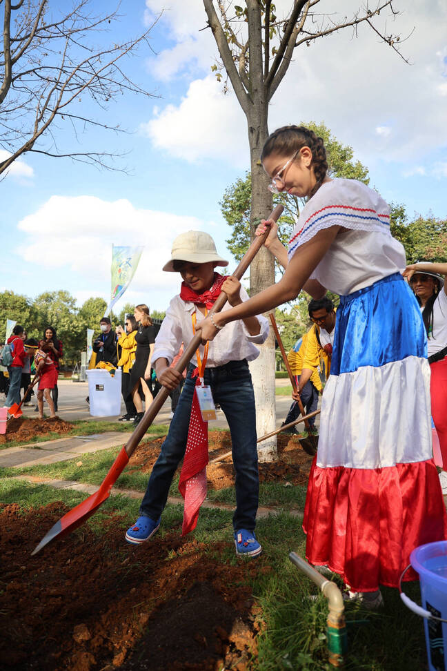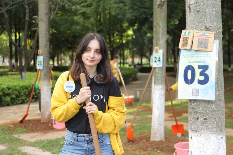 中学生选手江近月与和她一样来自哥斯达黎加的鸿屹、何诗怡一起在云南师范大学的国际友谊林种下了友谊之树,用绿色、恒久的方式留下一份在中国的美好印记。