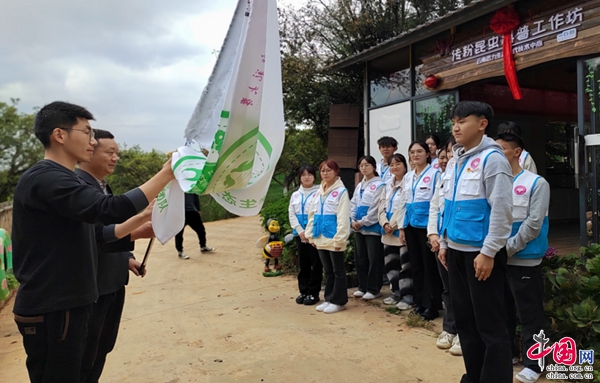 云南师范大学与云南思力生态替代技术中心于近日在昆明市乡村振兴学农劳动教育实践基地试点单位——寻甸一丘田善态庄园为云南师范大学青年志愿者举行了生态文明科普教育创新团队授旗仪式,希望通过多方合作,充分发挥各自的优势,共同推动生态文明科普教育的创新与发展。