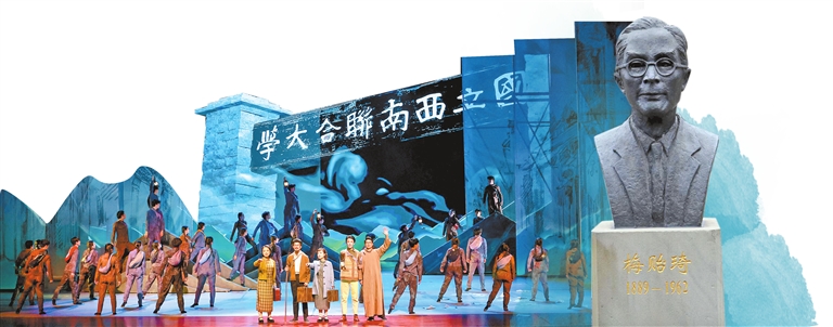大型音乐舞蹈史诗《西南联大》 本报记者 胡妤雅 摄 西南联大梅贻琦雕像