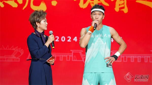 在动感的音乐声和精彩的啦啦操表演中,亚洲第一个“飞跃九人”的扣篮高手,云南师范大学2020级运动训练专业的万磊超燃出场。从云南扣篮王到中国扣篮王、世界扣篮王,他用一个个扣篮的精彩瞬间征服了现场、观众。他笃定地告诉大家:“如果有梦想就大胆去冲,不要在意路途有多么遥远,过程有多么艰辛,全力以赴地去追求更好的自己。”