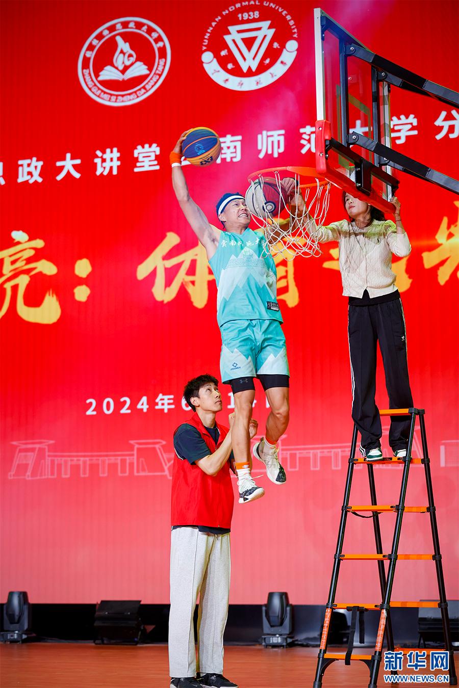 万磊在表演扣篮(6月14日摄)。新华网 徐华陵 摄