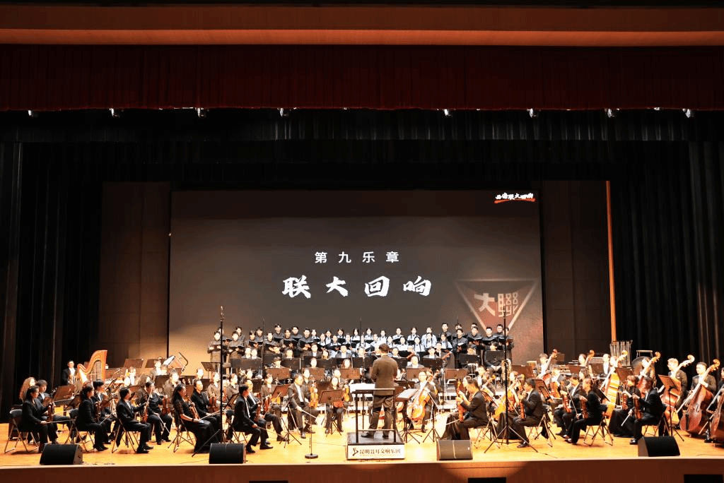 9月27日晚,由昆明聂耳交响乐团演奏、云南艺术学院青年合唱团合唱、作曲家刘晓耕、刘晔创作的交响组曲《西南联大回响》,在云南师范大学奏响,全校师生1200余人现场观看演出,在音乐中循着历史的足迹,走进联大先辈的故事,重温波澜壮阔的岁月。