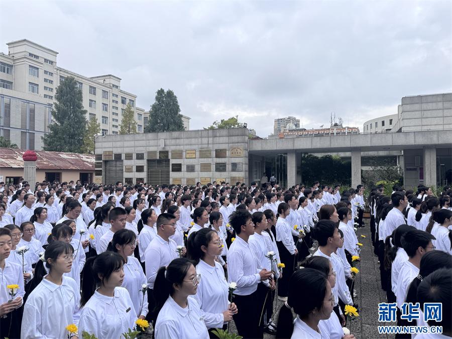 云南师范大学师生手持鲜花缅怀烈士(9月30日摄)。新华网 柴静 摄