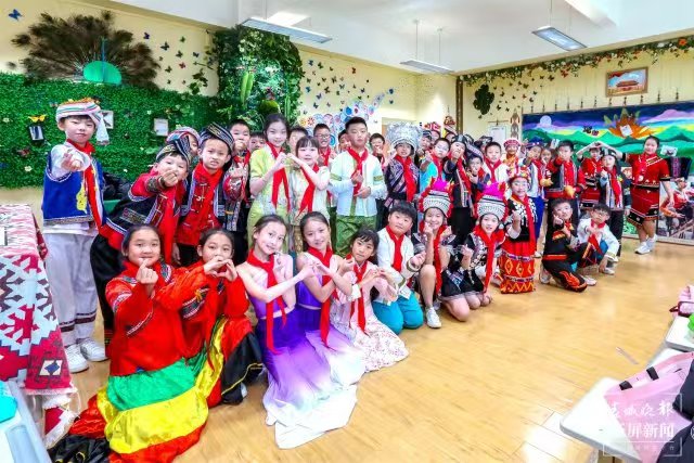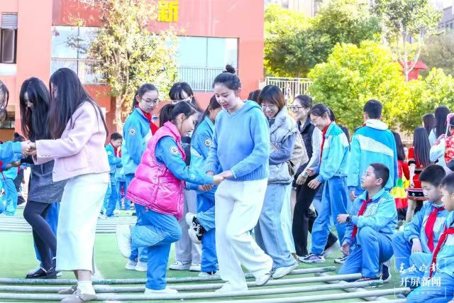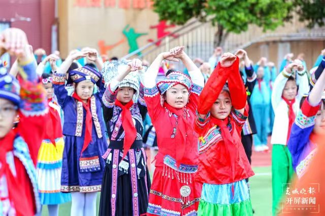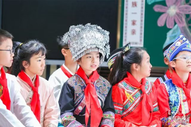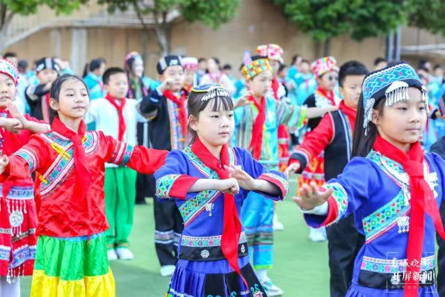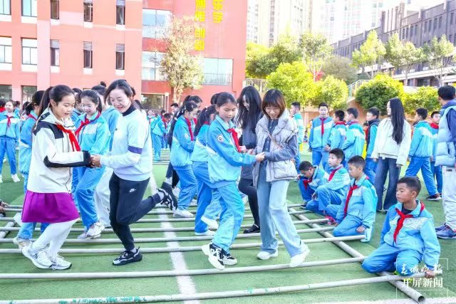 “在推动思政教育创新的过程中,学校充分利用环境育人功能,打造了一系列寓教于乐的场景化教学模式。通过创设情景,让学生在真实体验中感受中华文化的深厚底蕴,激发爱国情怀,提升道德素养,实现全面发展。”师大附属七彩云南小学党支部书记、校长彭文冲说,薪火相传,弦歌不辍。我们传承着西南联大刚毅坚卓的精神,作为小学,我们将继续深化思政课程改革,着力挖掘并整合优质教育资源,将铸牢中华民族共同体意识贯穿于日常教学之中,尤其注重引导小学生树立正确的国家观、民族观、历史观和文化观。例如,大课间的竹竿舞活动,不仅锻炼了孩子们的身体,更让他们在欢笑声中接触到了少数民族的传统文化,体会到了多元文化的魅力,从而促进各民族间的相互了解与尊重,培养了深厚的民族自豪感与归属感。